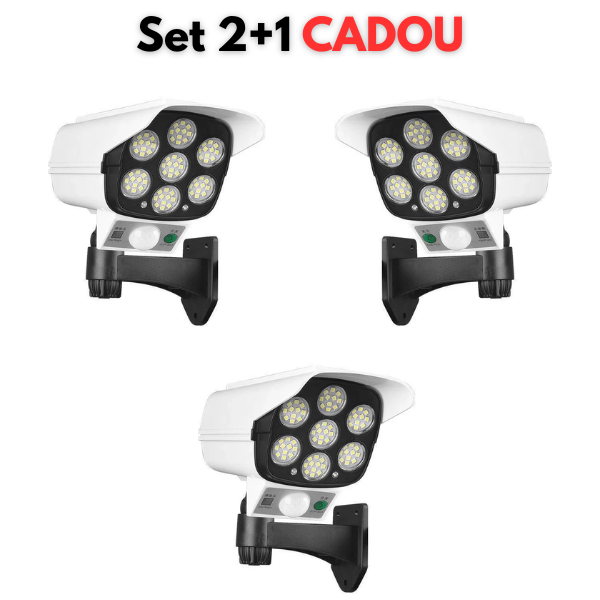 Pachet 2+1 CADOU – Cameră de supraveghere falsă cu încărcare solară și 77 LED-uri